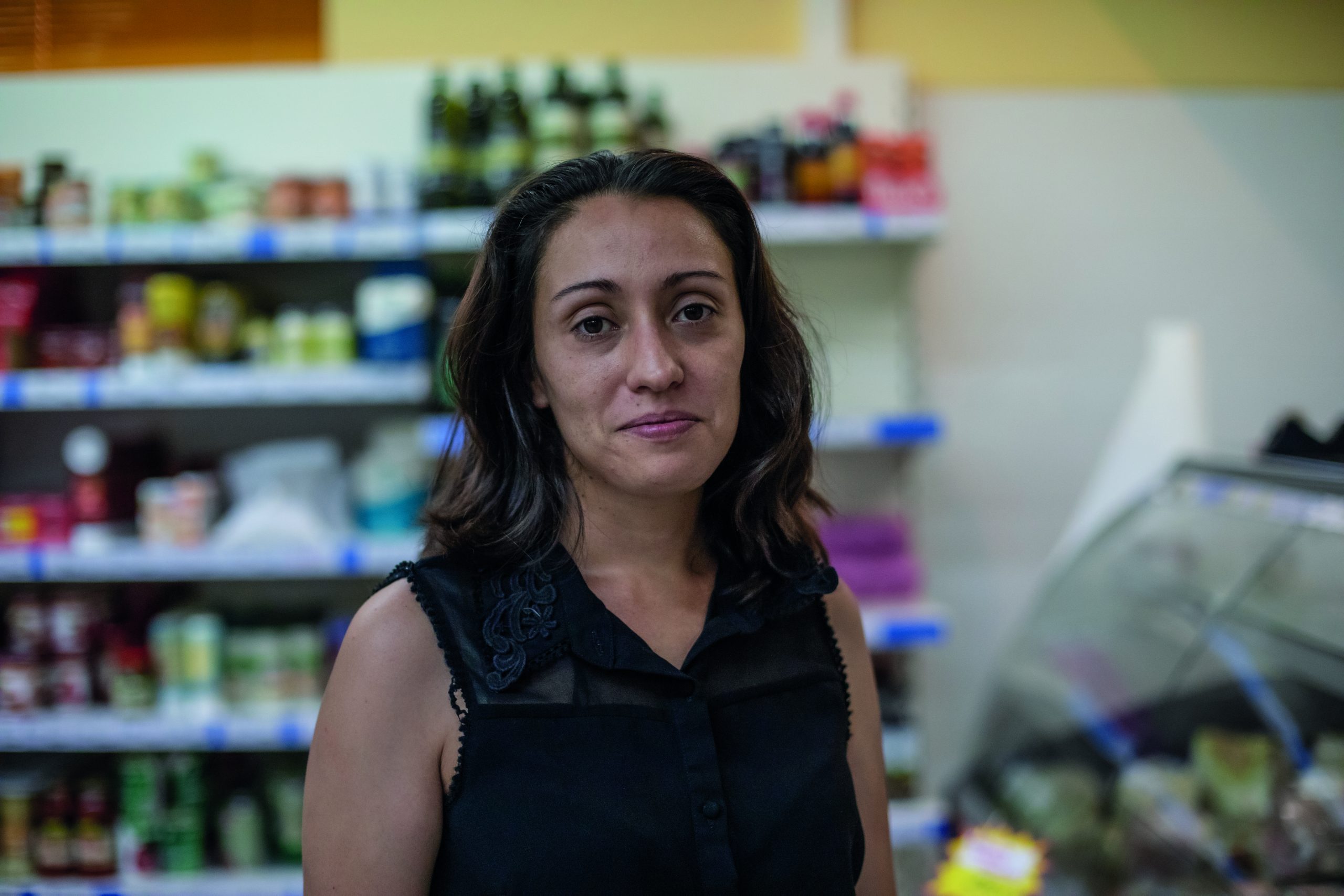—Lo siento, pero no hay pan— responde a una clienta que entra en la tienda.